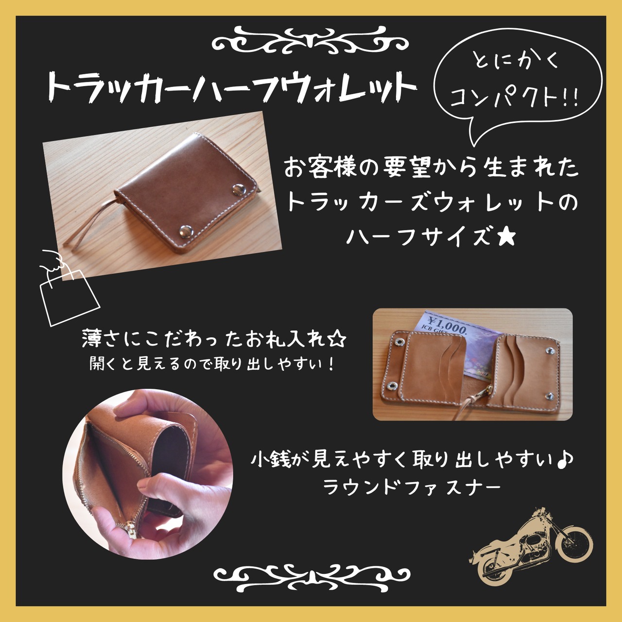 お札が見えやすいように試行錯誤したハーフウォレットです。