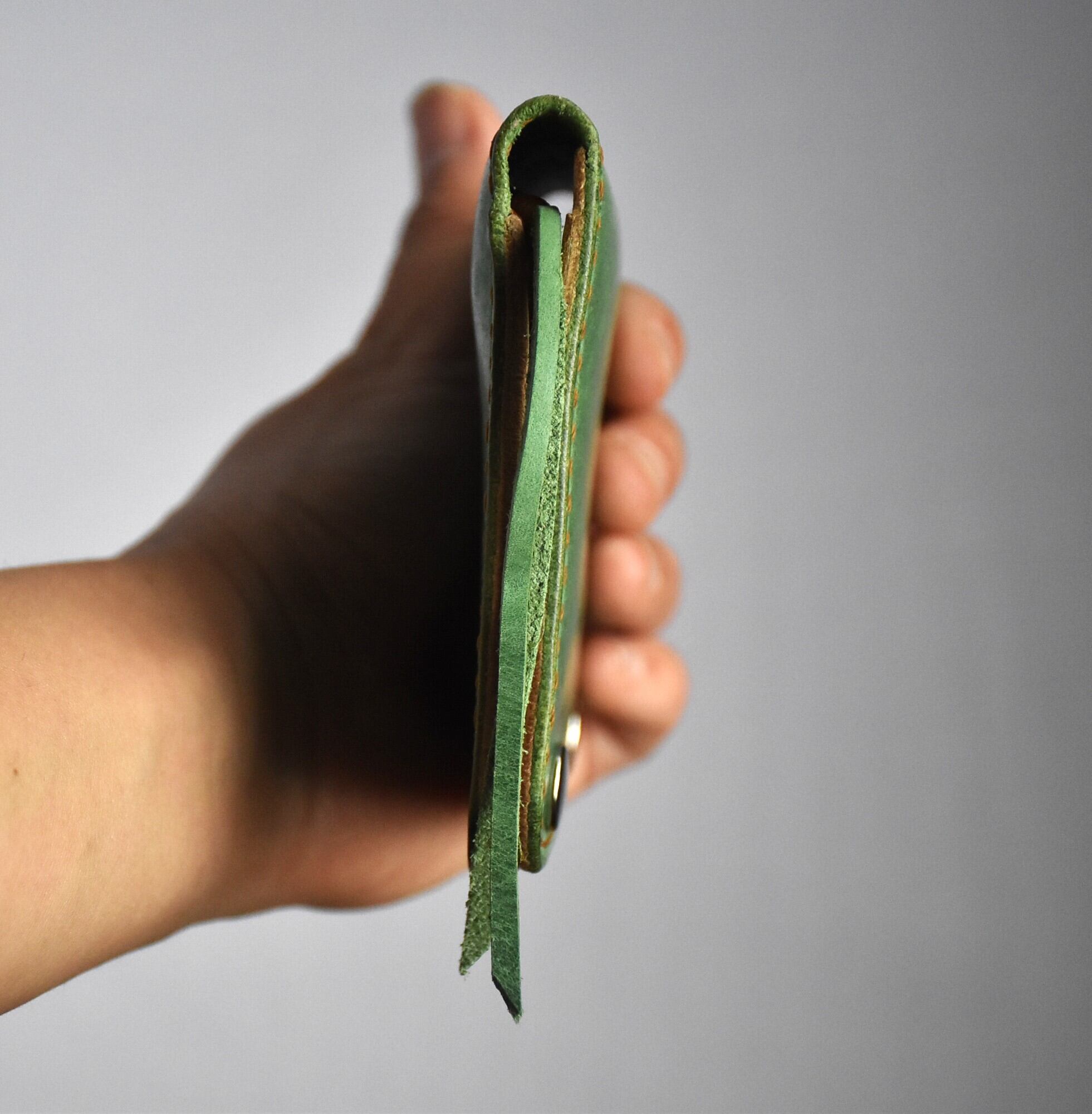 極薄!ハーフウォレット(グリーン) 革財布 ハーフウォレット 本革 牛革 かわいい カラー 薄型 最低限 プレゼント 母