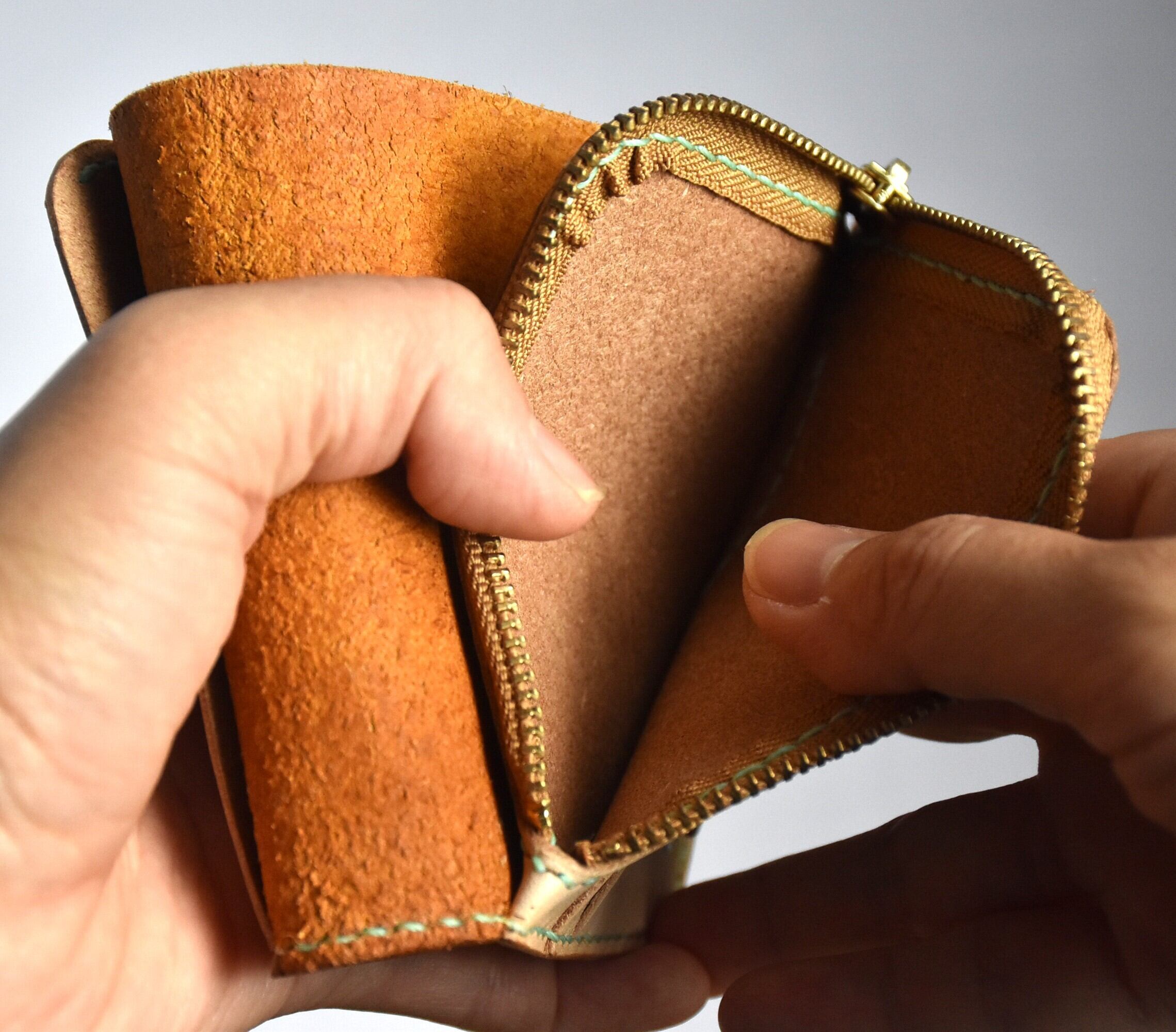 お札が見えやすいように試行錯誤したハーフウォレットです。