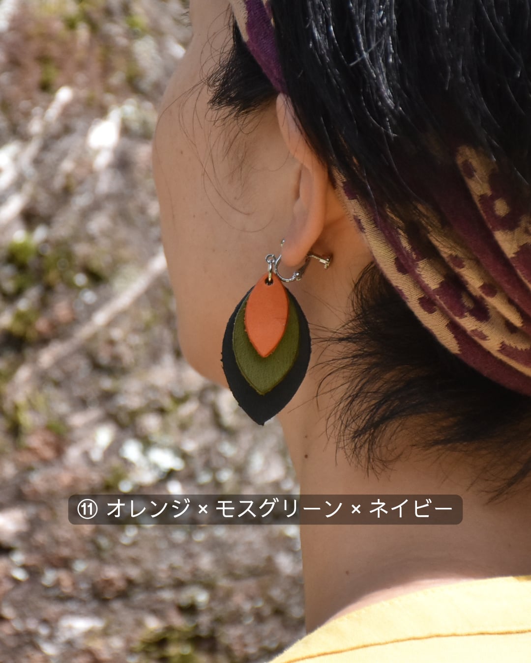 耳元に自然の息吹を感じる、本革 の リーフ イヤリング / ピアス