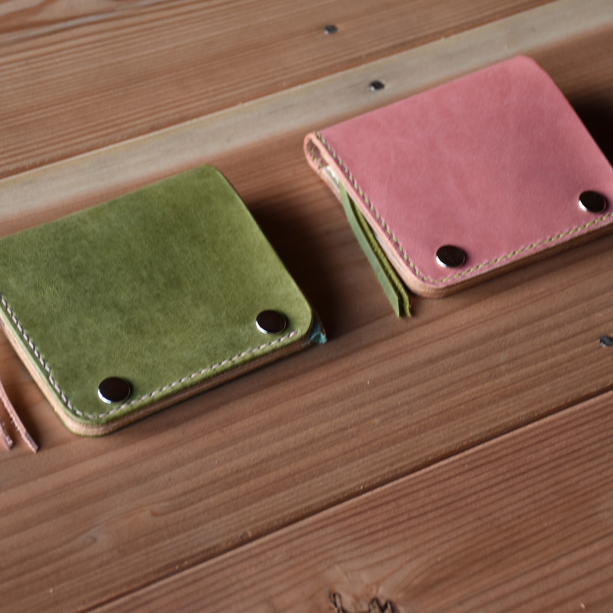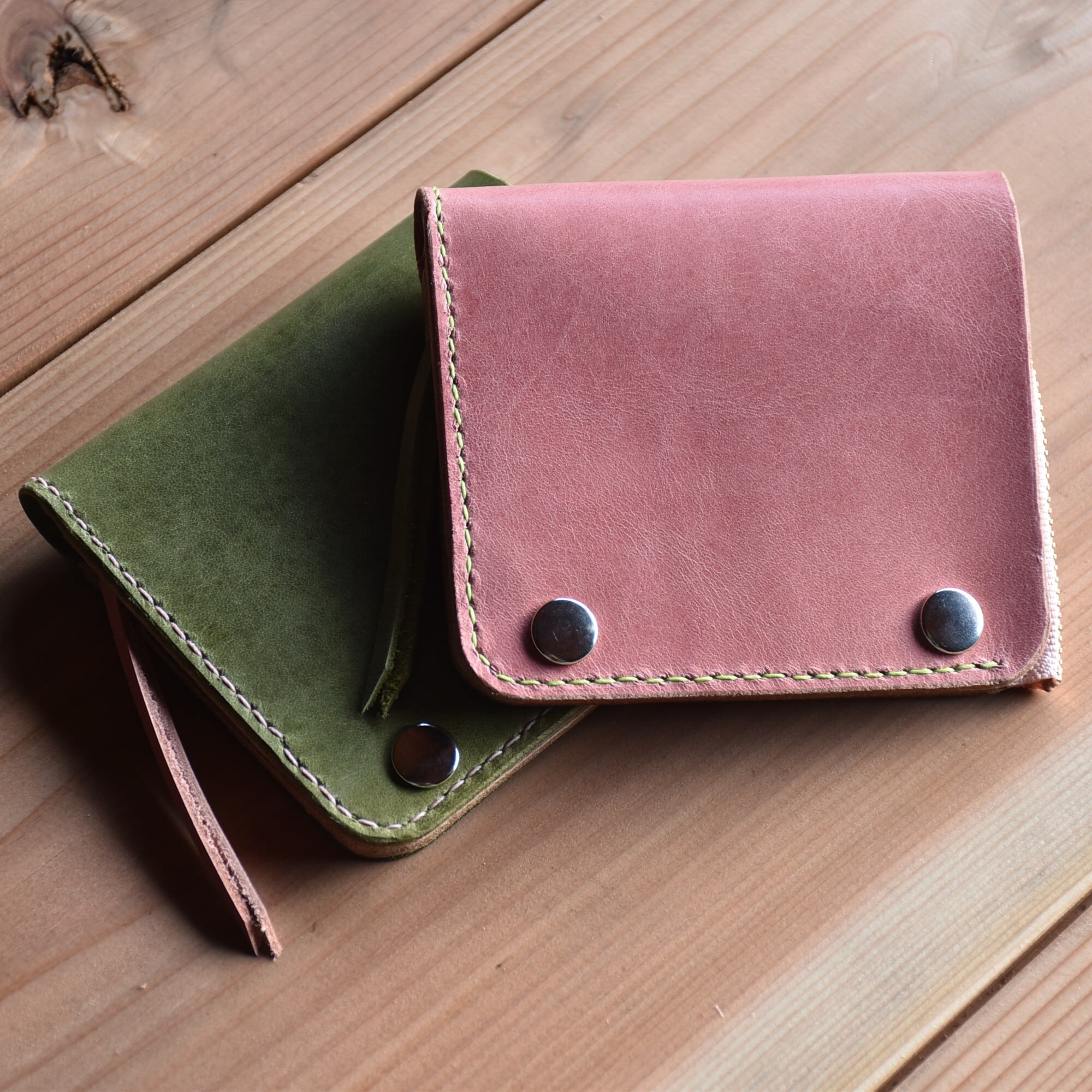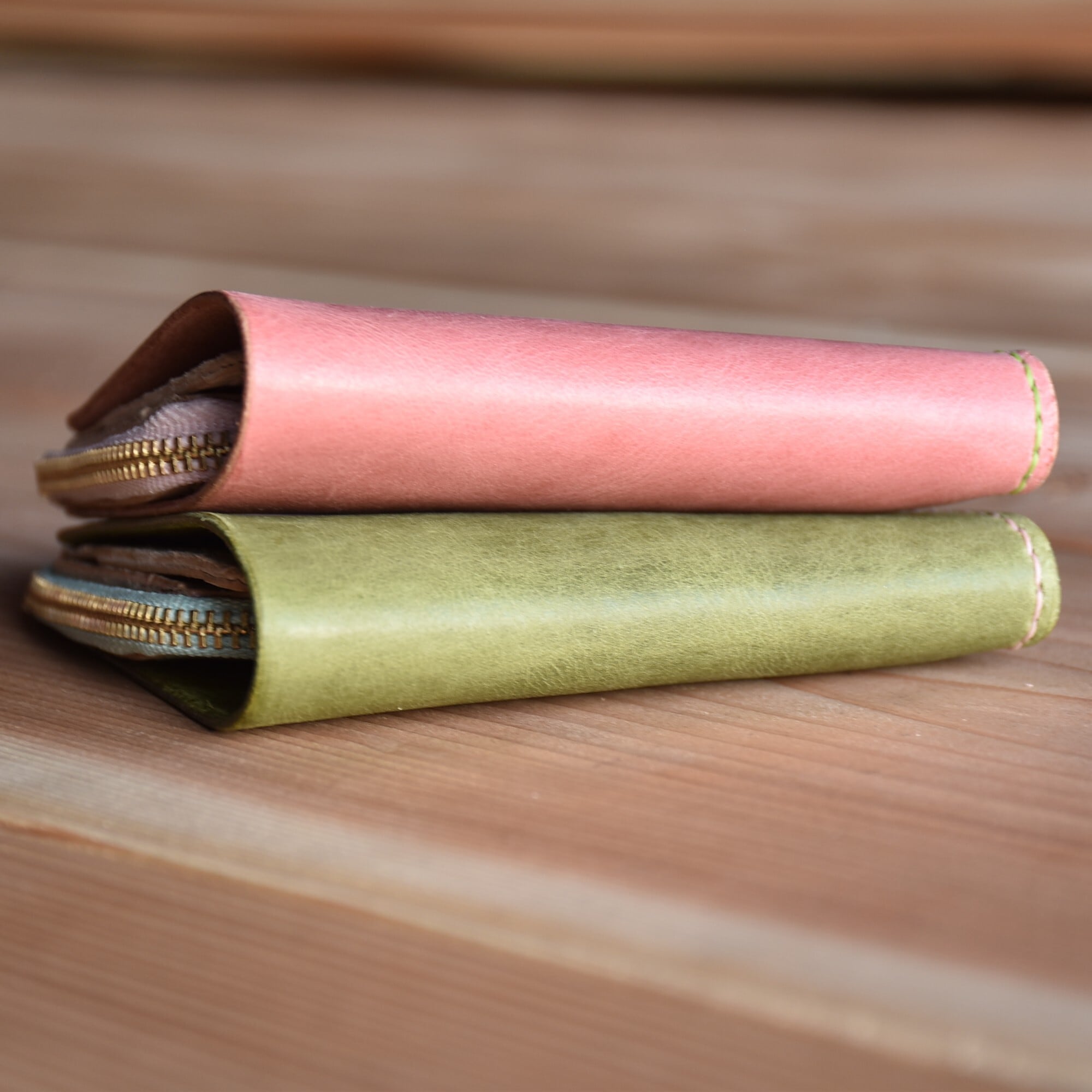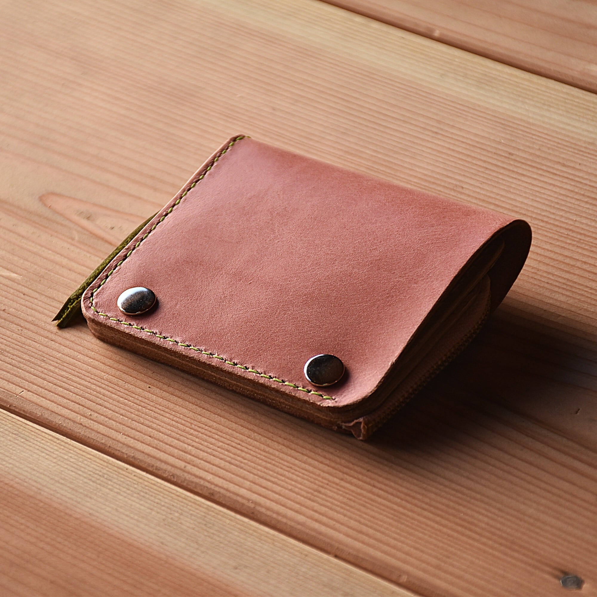 さくら餅 をイメージした ピンク と モスグリーン のコラボ財布です。