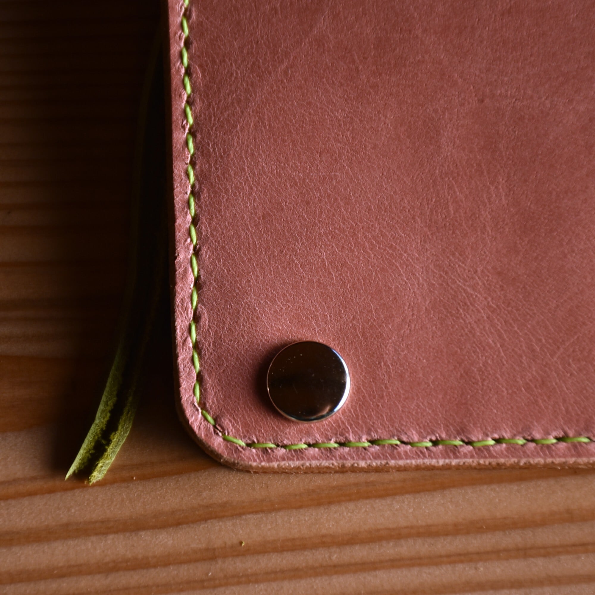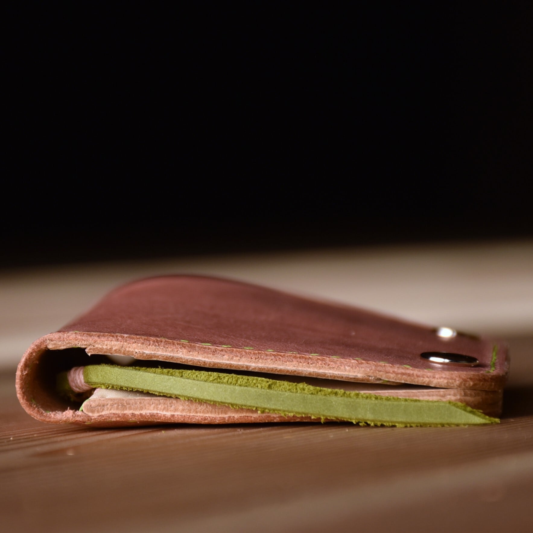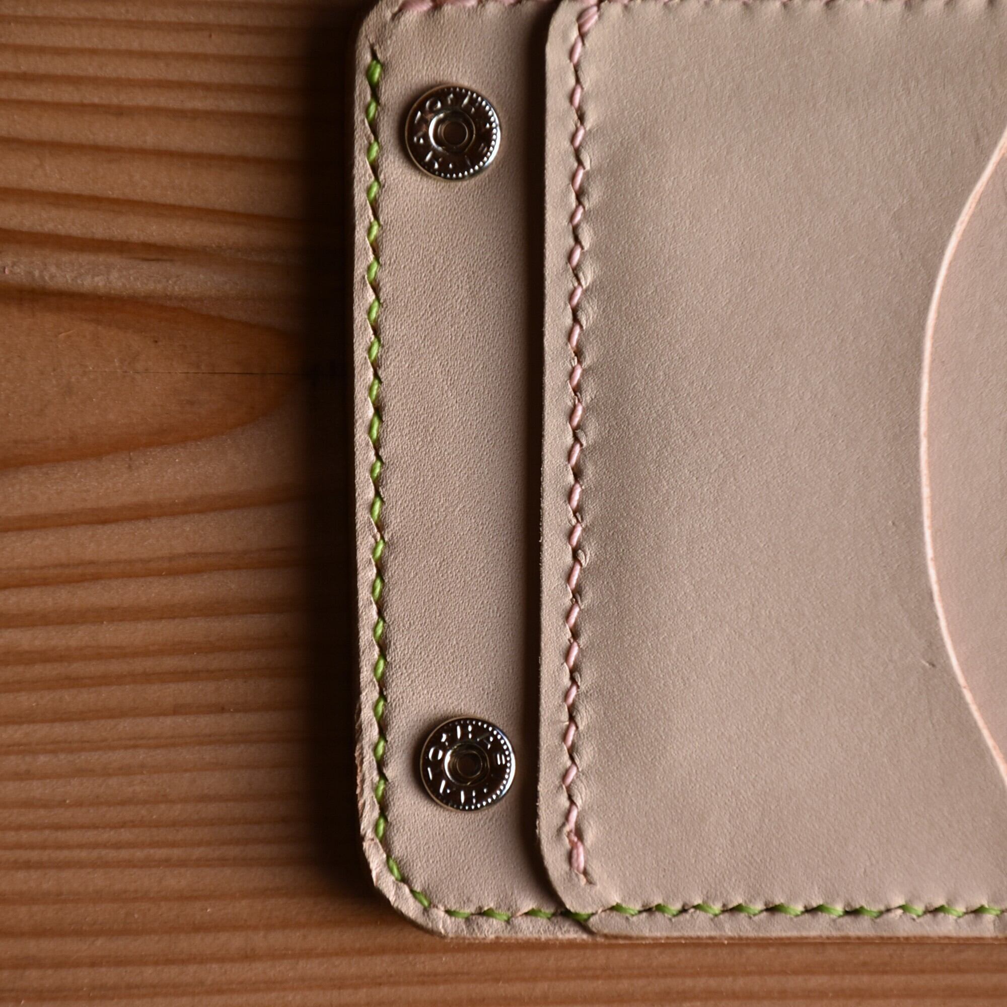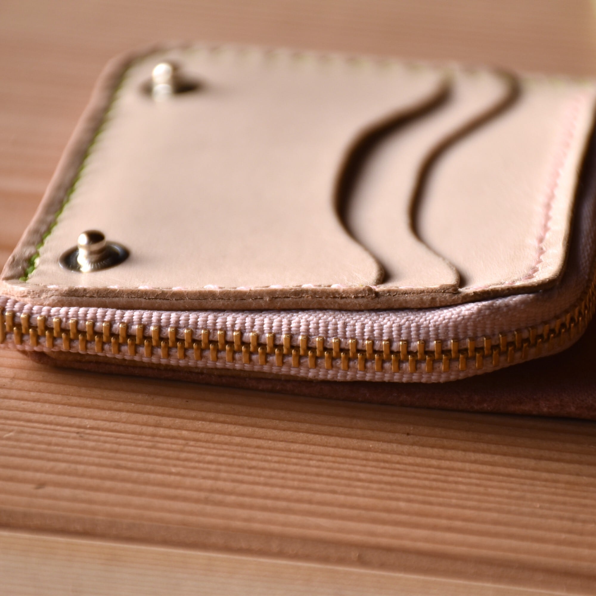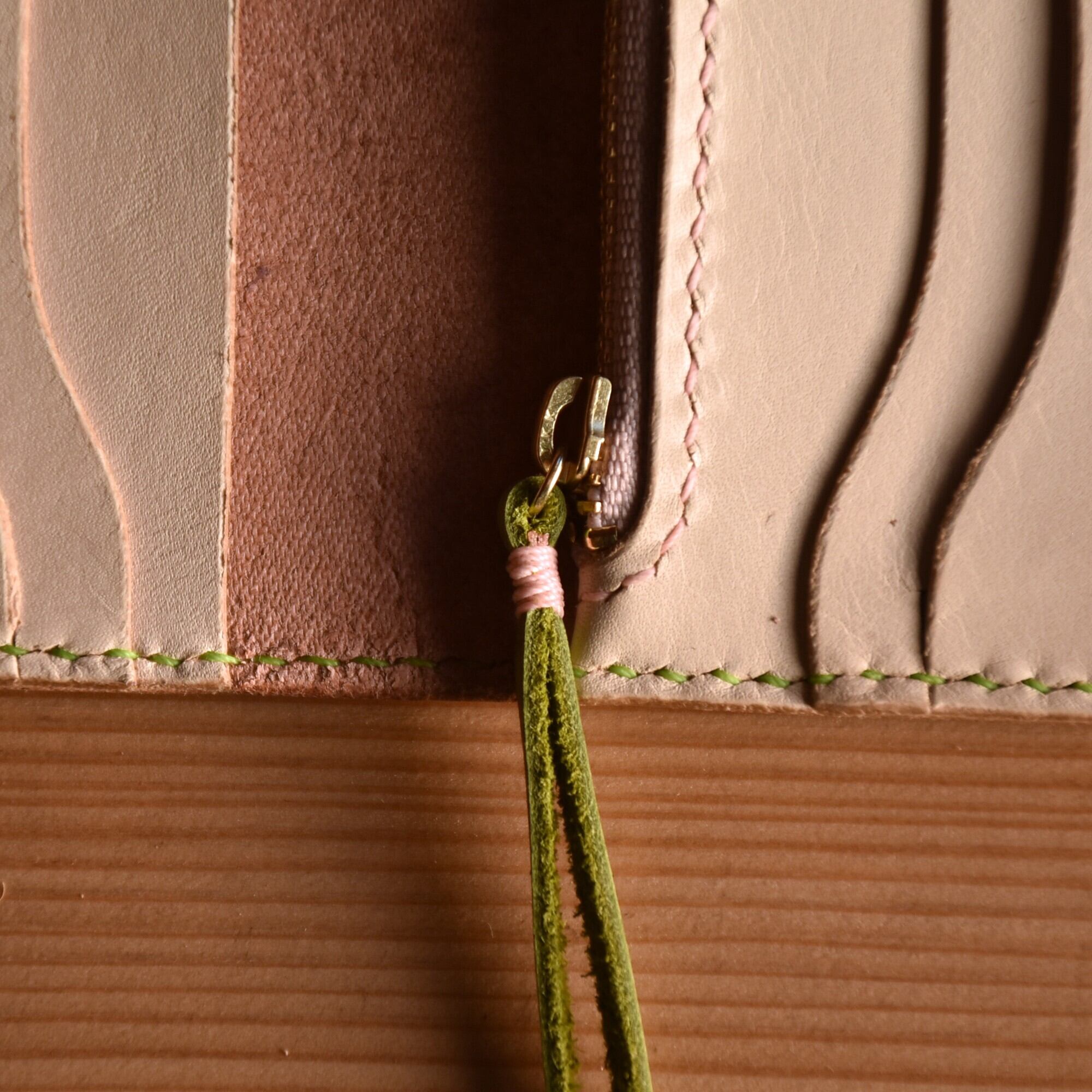さくら餅 をイメージした ピンク と モスグリーン のコラボ財布です。
