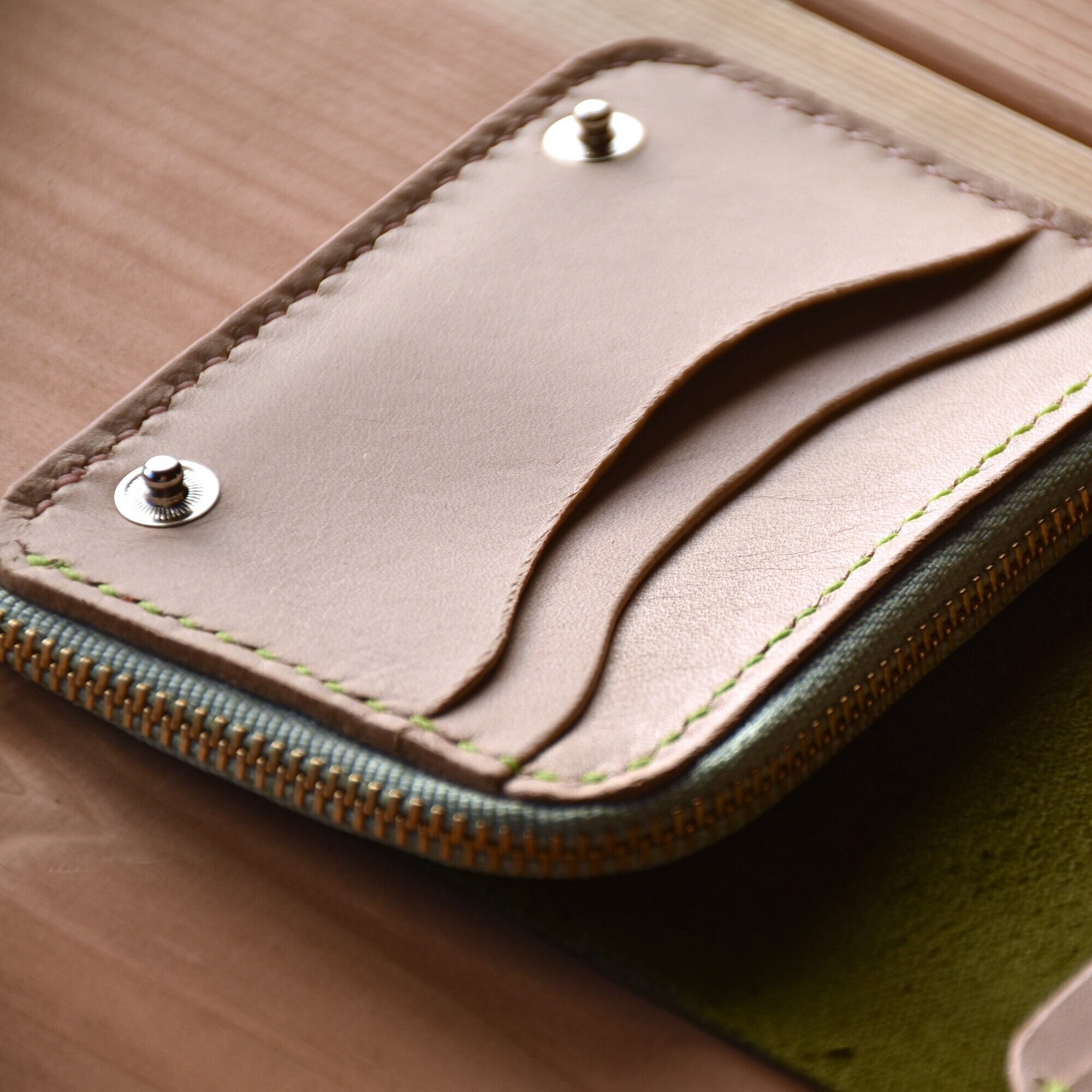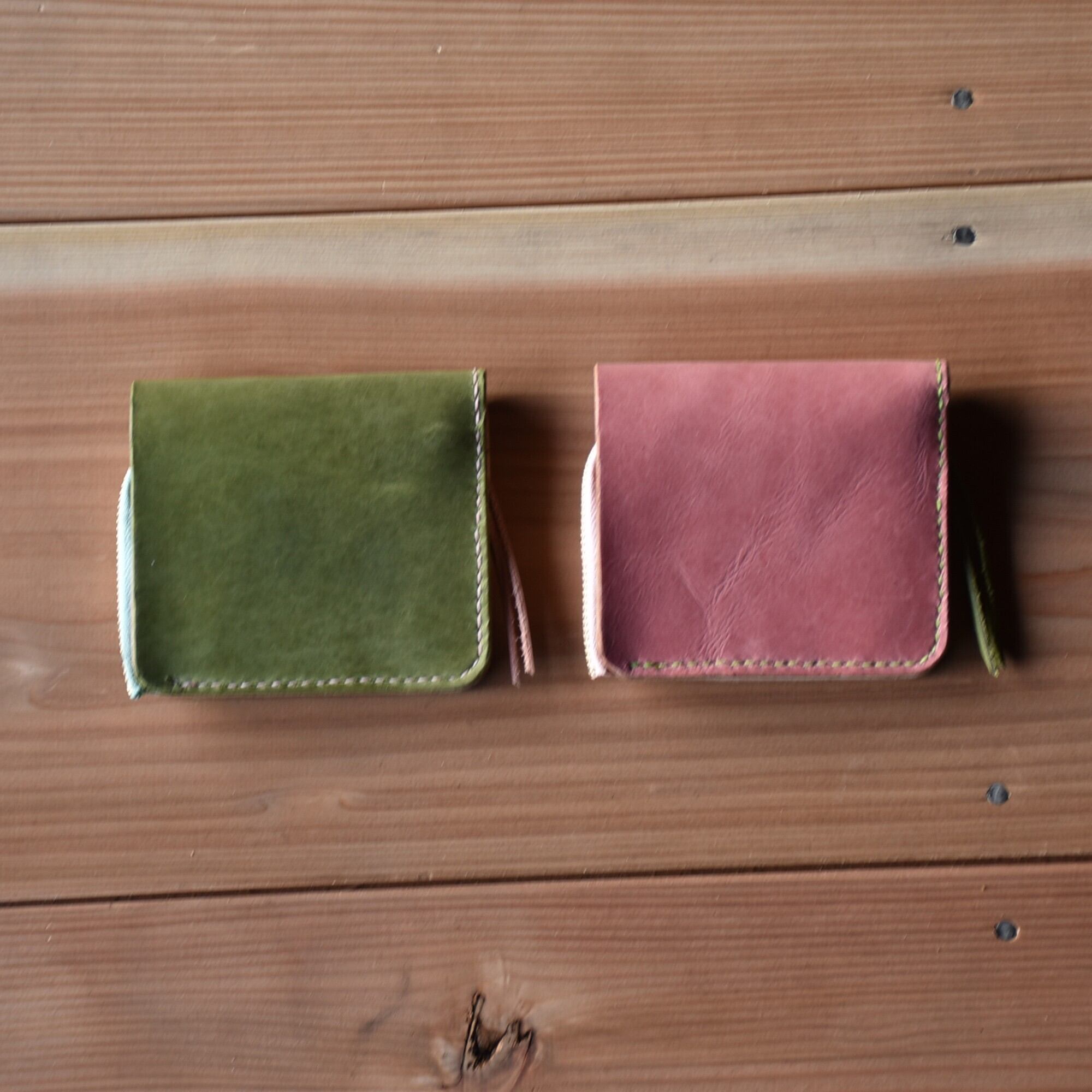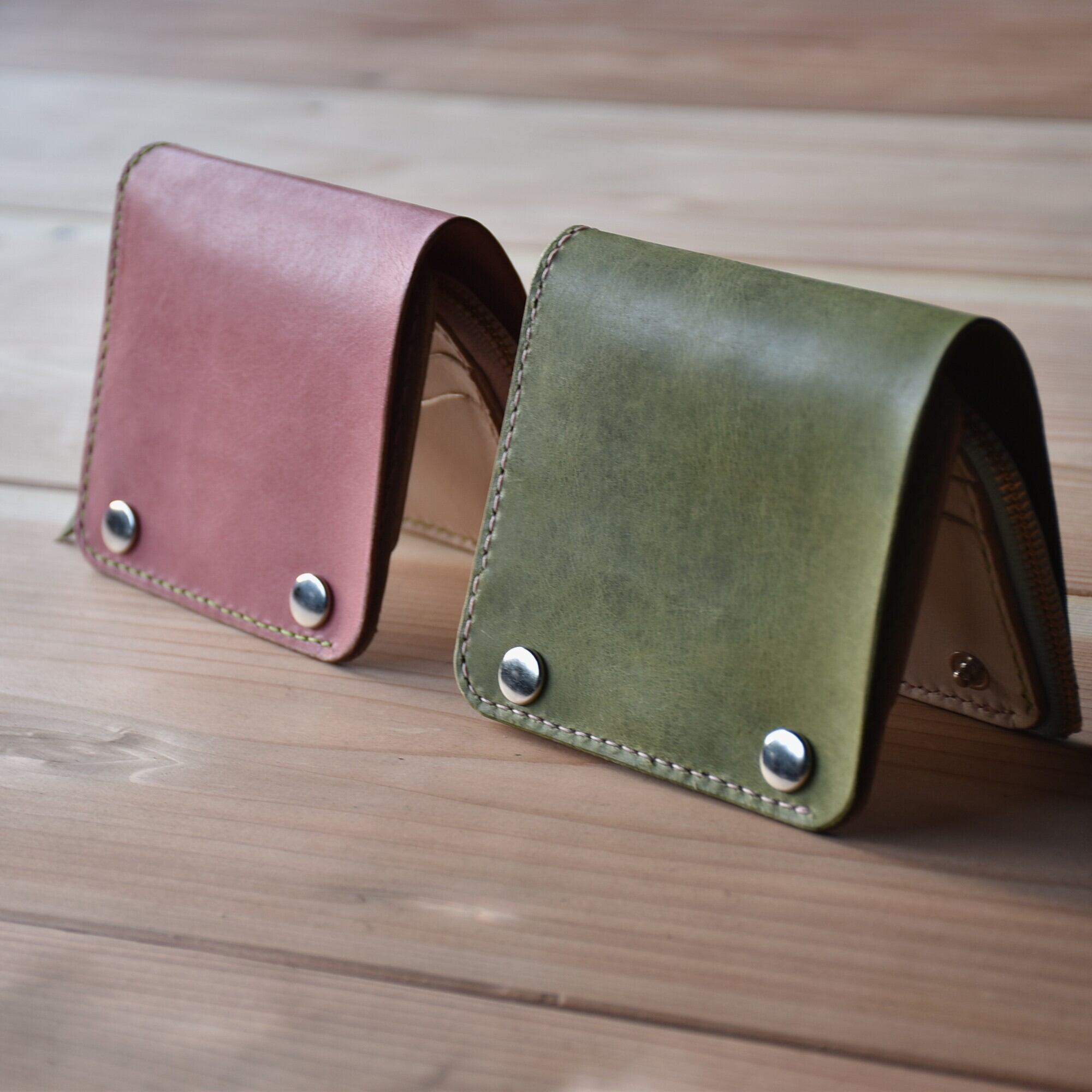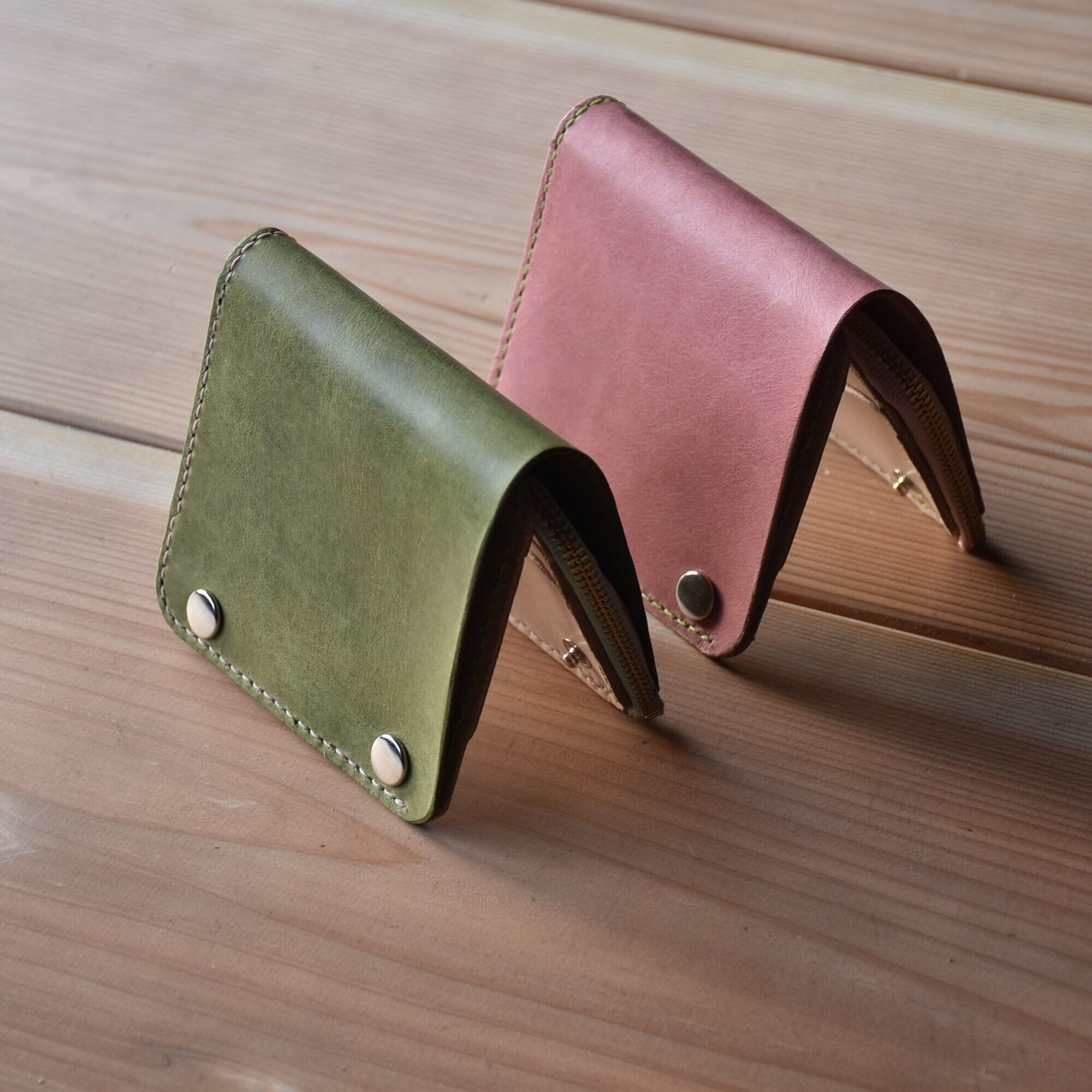 さくら餅 をイメージした ピンク と モスグリーン のコラボ財布です。