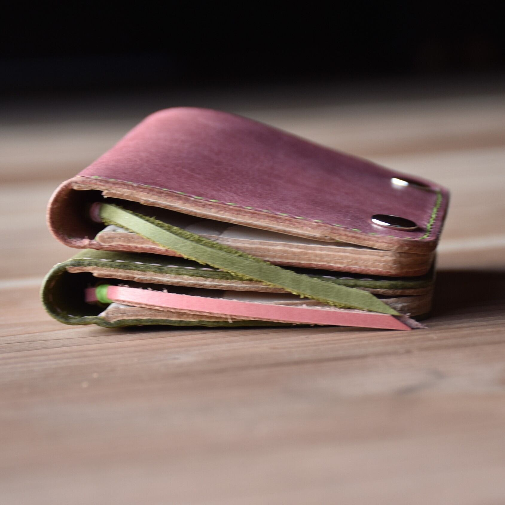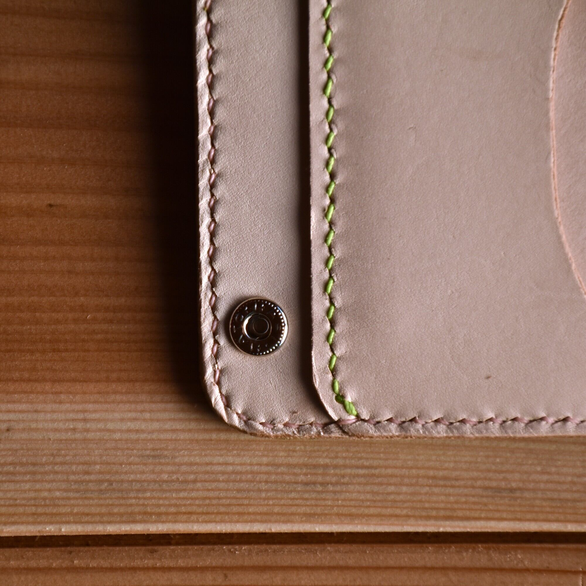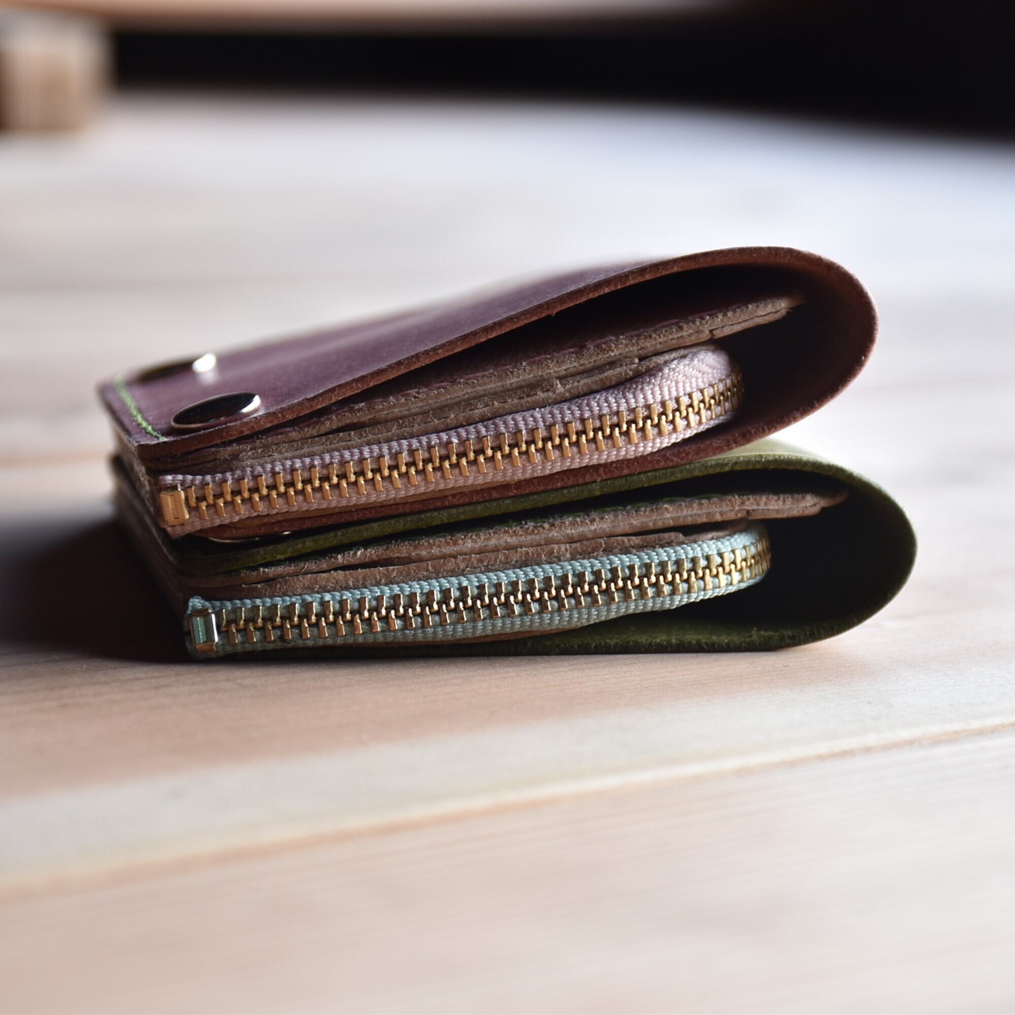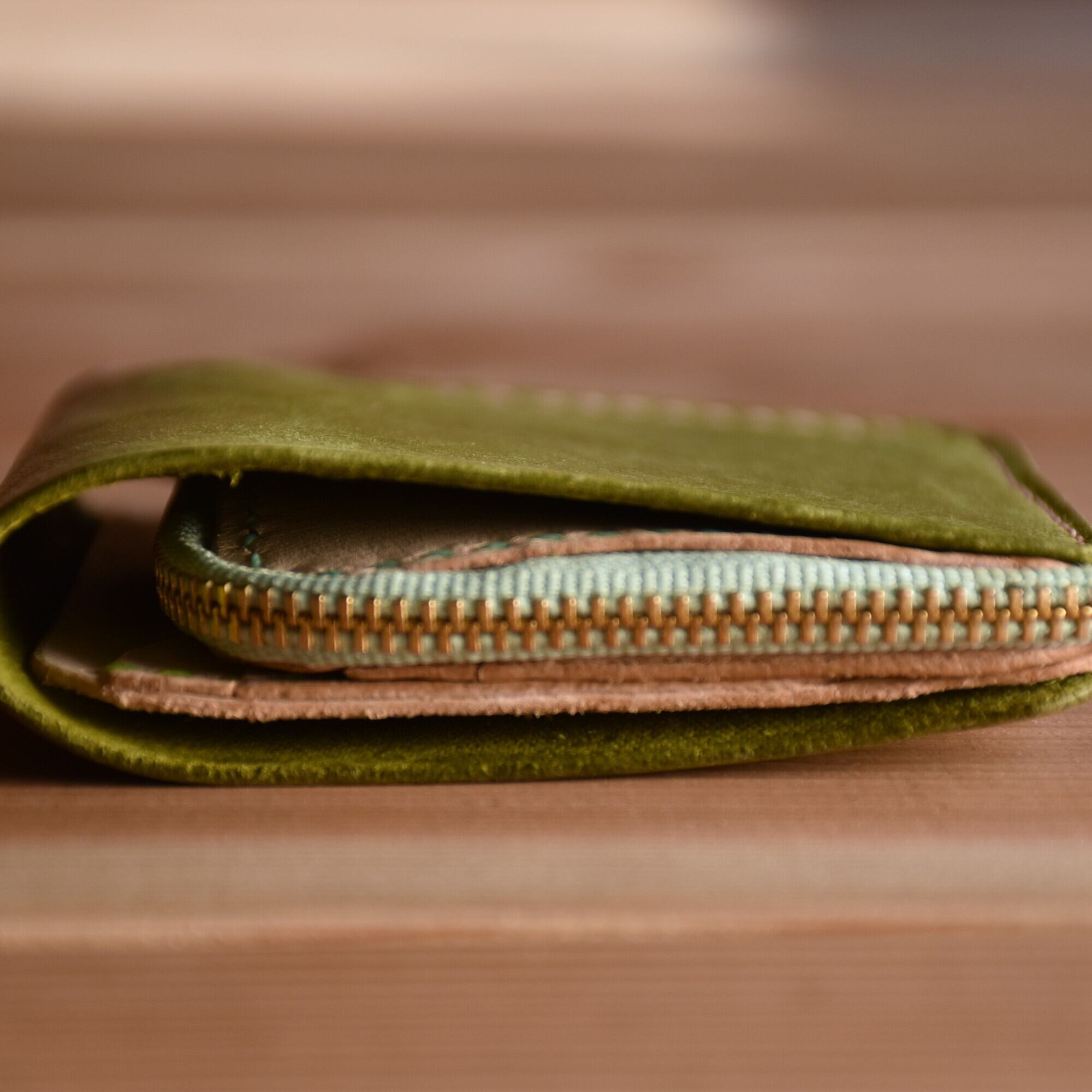 さくら餅 をイメージした ピンク と モスグリーン のコラボ財布です。